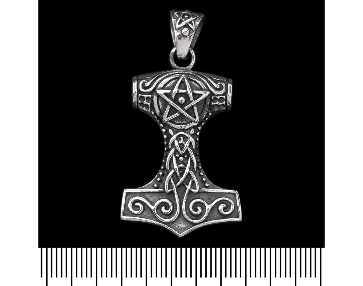 Hammer of Thor pendant with a pentagram (silver, 925) (sp-118) 12.5 grams, height 34 mm, width 24.5 mm, chain eye size 7x5 mm