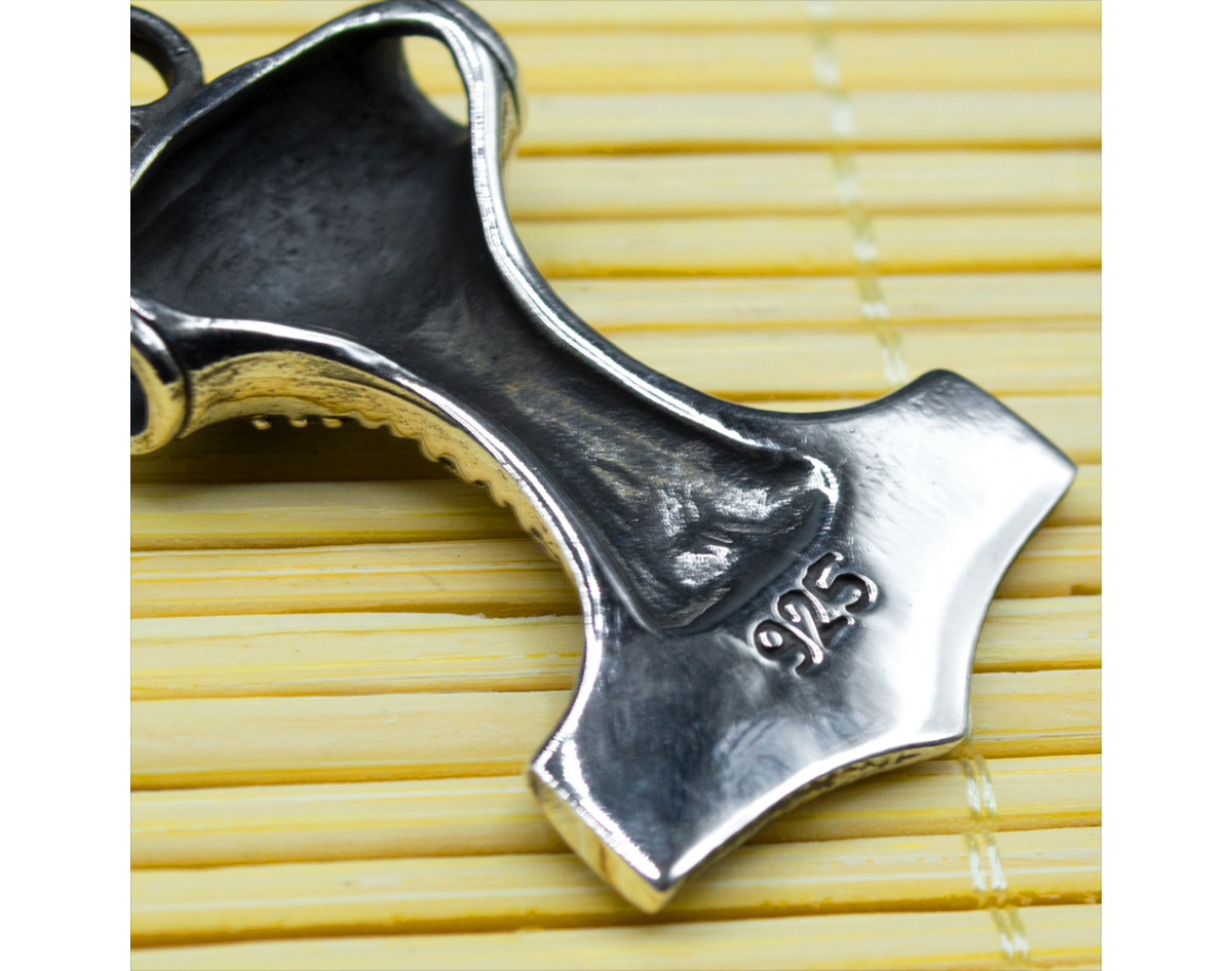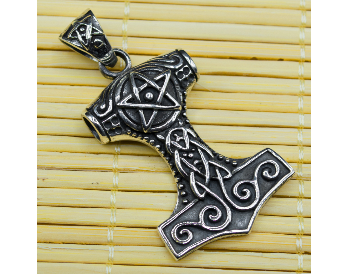Thor's Hammer Pendant with a Pentagram (Silver, 925) (sp-118)