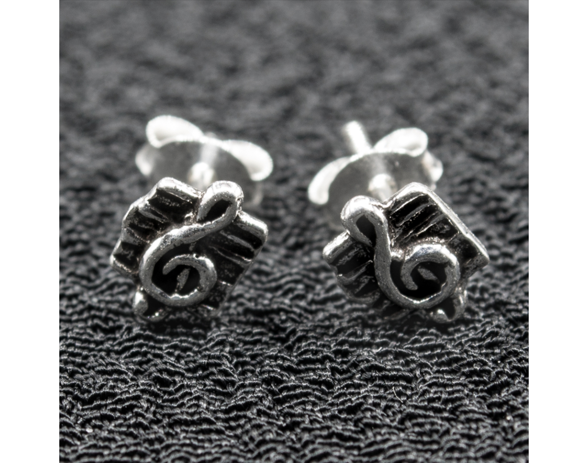 Treble clef on sheet music Stud earring (silver, 925 sterling) (sn-048) The price is indicated for 1 unit of the product