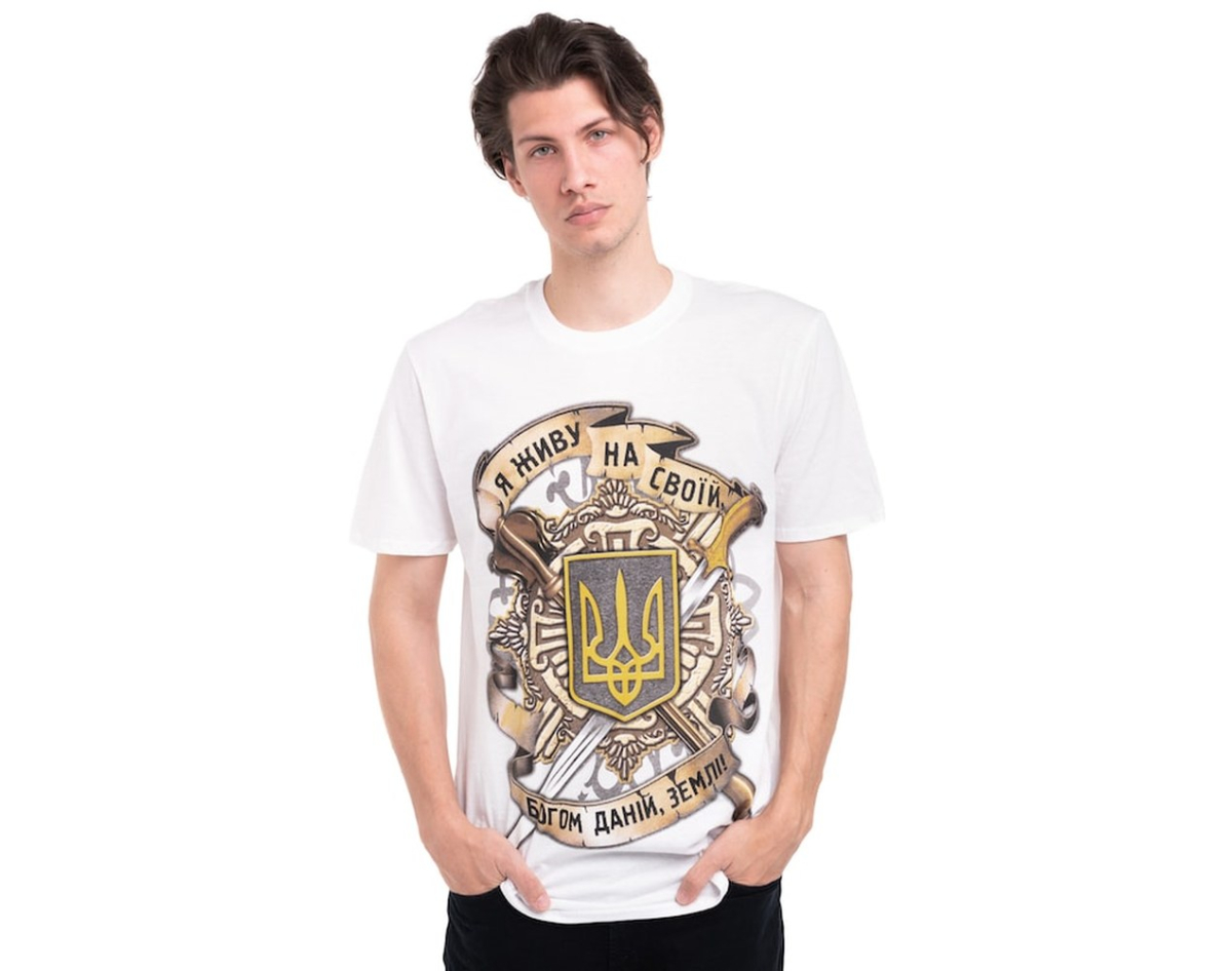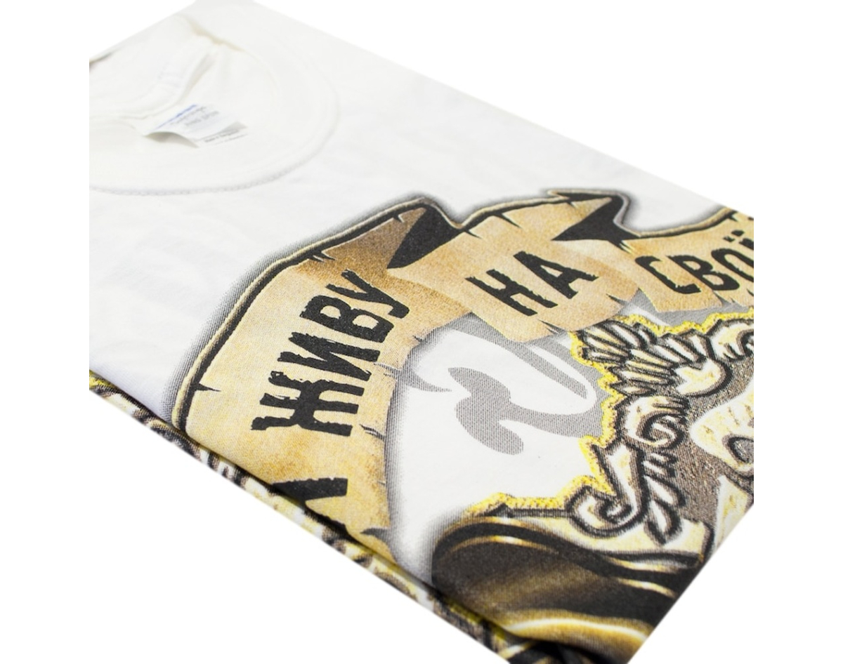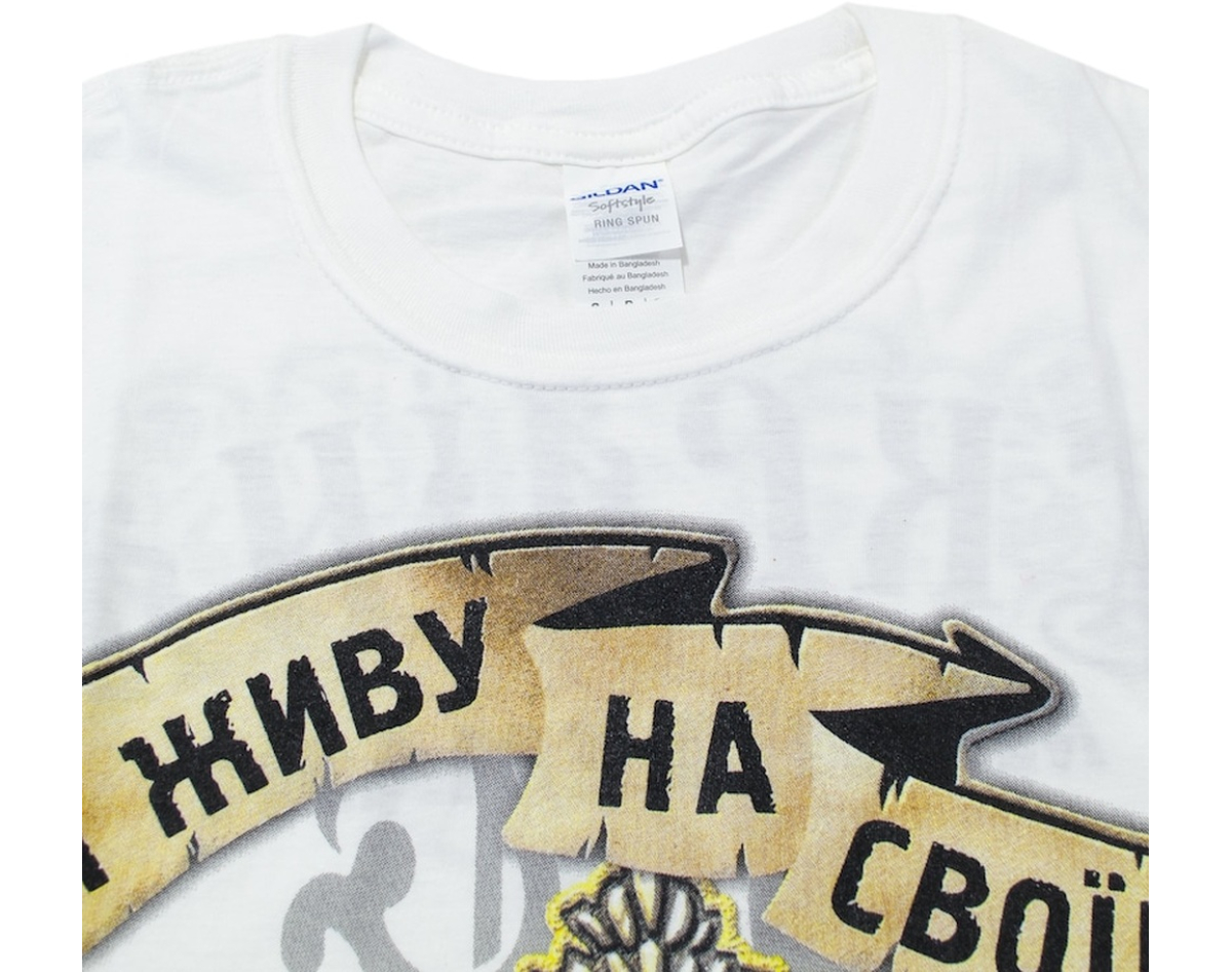 production: Gildan; fabric: 100% cotton (quality seams, neck does not stretch). Density 160 g / m², the picture is applied by the method of silk screen printing (does not crack, does not deteriorate due to washing, does not fade); picture: plastisol paint of EU production. Wash at a temperature of up to 30°