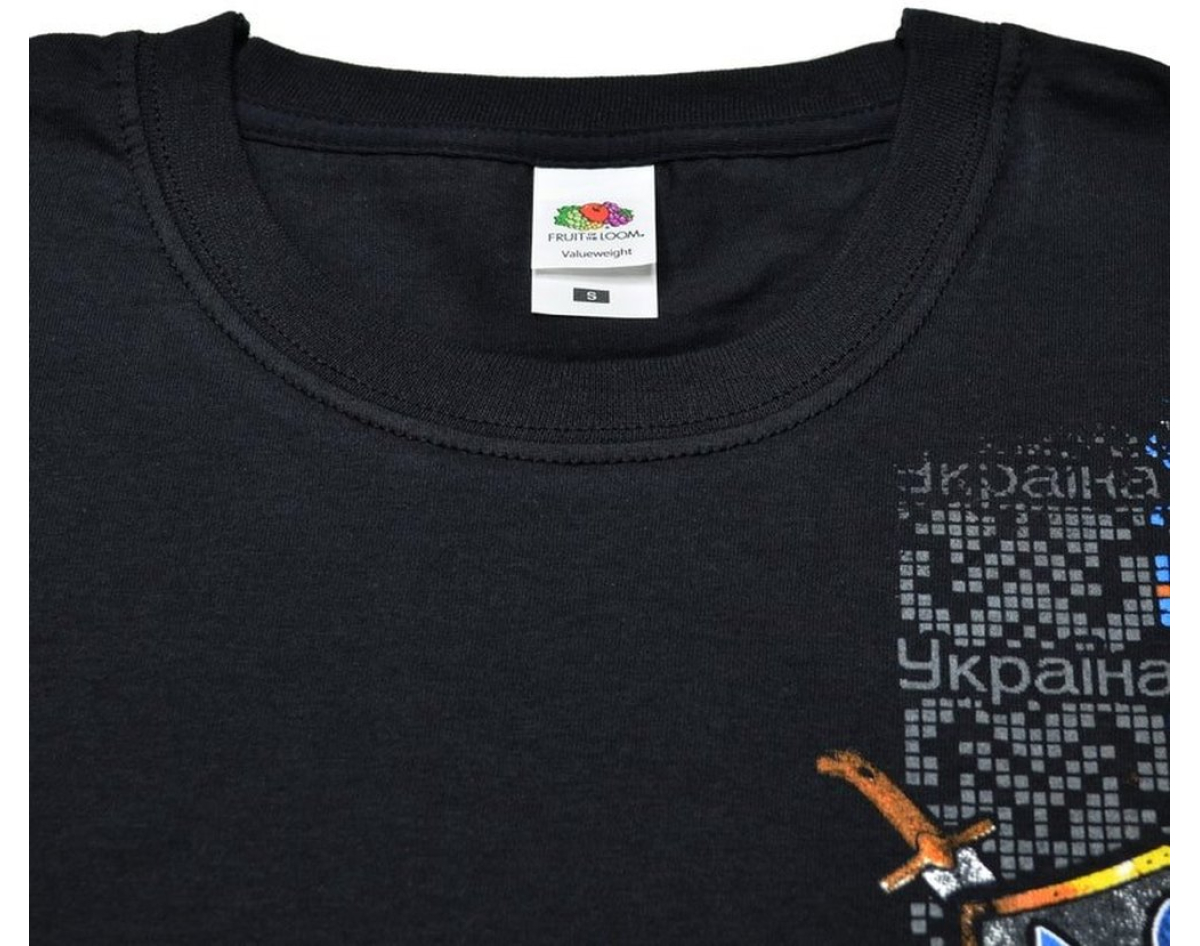 production: Gildan; fabric: 100% cotton (quality seams, neck does not stretch). Density 160 g / m², the picture is applied by the method of silk screen printing (does not crack, does not deteriorate due to washing, does not fade); picture: plastisol paint of EU production. Wash at a temperature of up to 30°