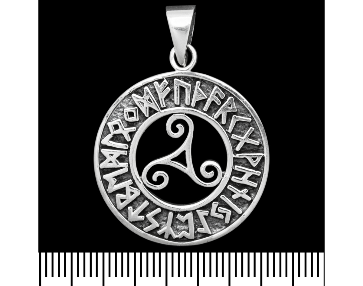 Trixel pendant in a disk with runes (silver, 925 assay value) (sp-186) 6.9 grams, diameter 27.5 mm, size of the eye for the chain 6x4 mm