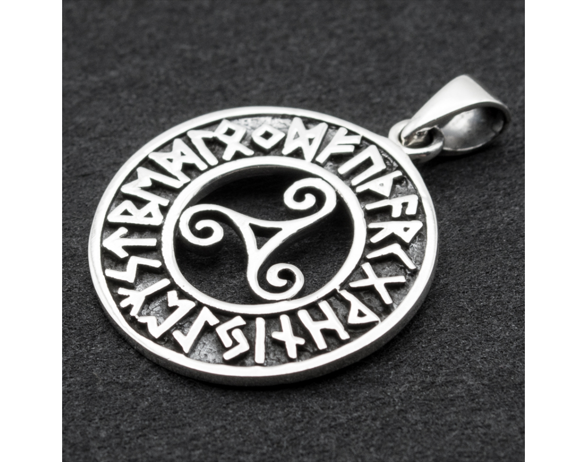 Trixel pendant in a disk with runes (silver, 925 assay value) (sp-186)