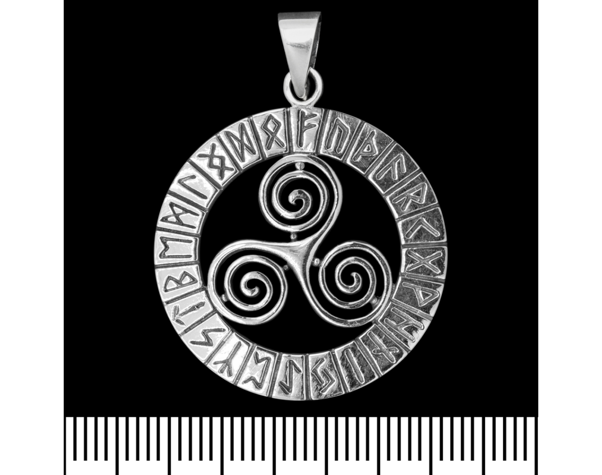Trixel pendant in futark (silver, 925 assay value) (sp-198) 6.15 grams, diameter 28 mm, size of eye for chain 6x4 mm