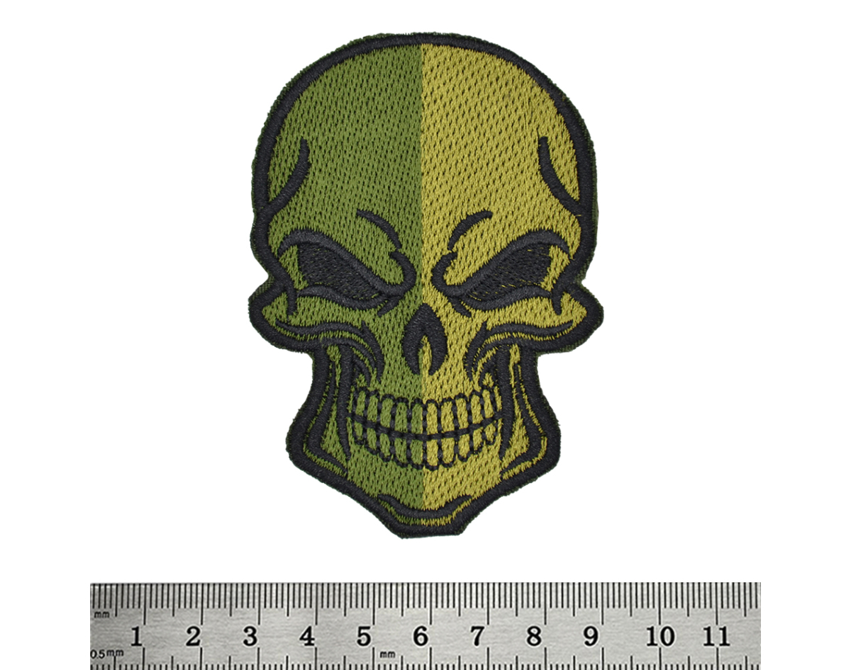 Two-Color Skull (Khaki/Olive) Embroidered Patch