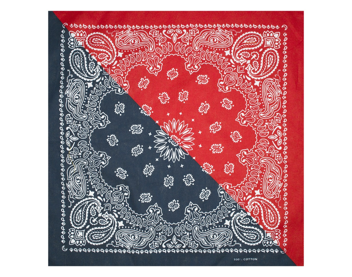 Two Colors Double White Paisley on indigo and Red Background Bandana