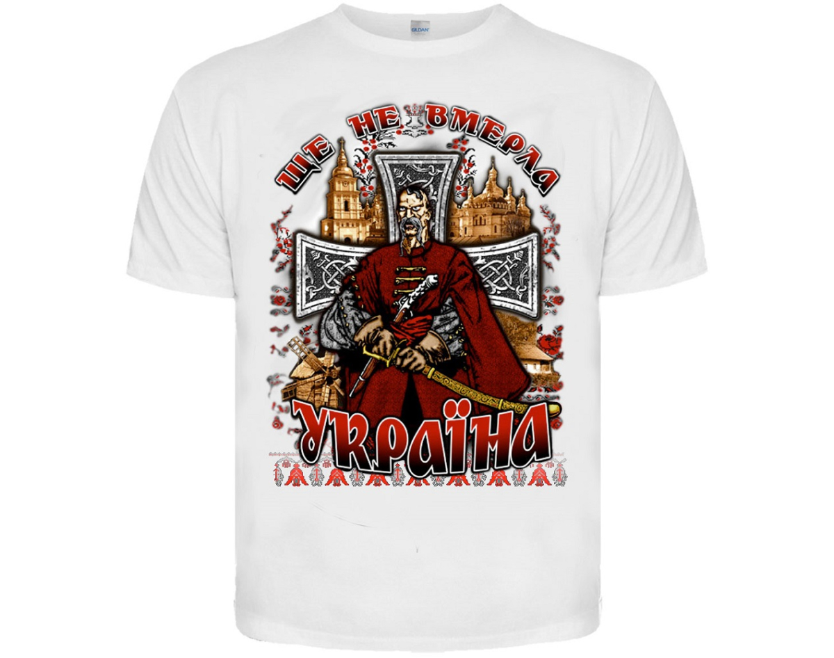 production: Gildan; fabric: 100% cotton (quality seams, neck does not stretch). Density 160 g / m², the picture is applied by the method of silk screen printing (does not crack, does not deteriorate due to washing, does not fade); picture: plastisol paint of EU production. Wash at a temperature of up to 30°