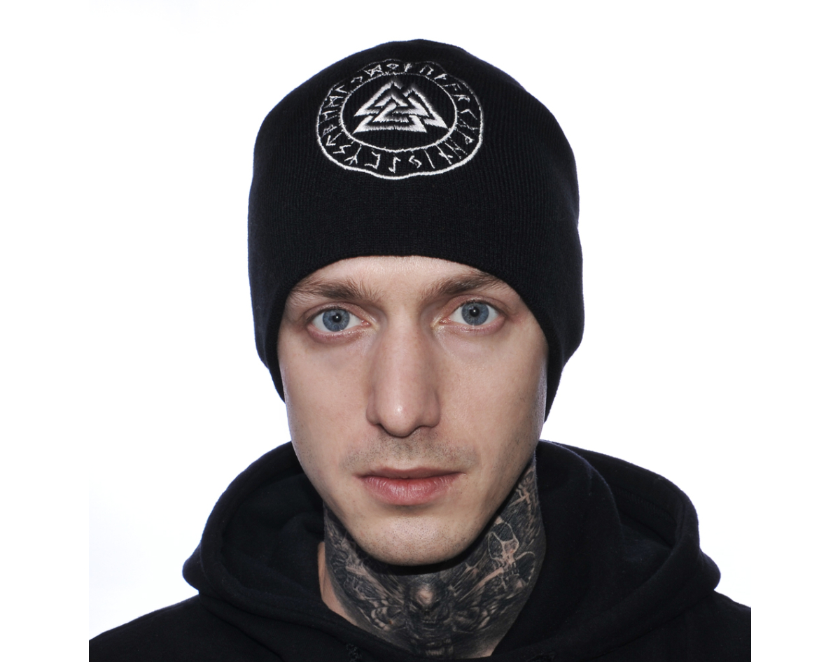 Valknut Black Hat with Embroidery