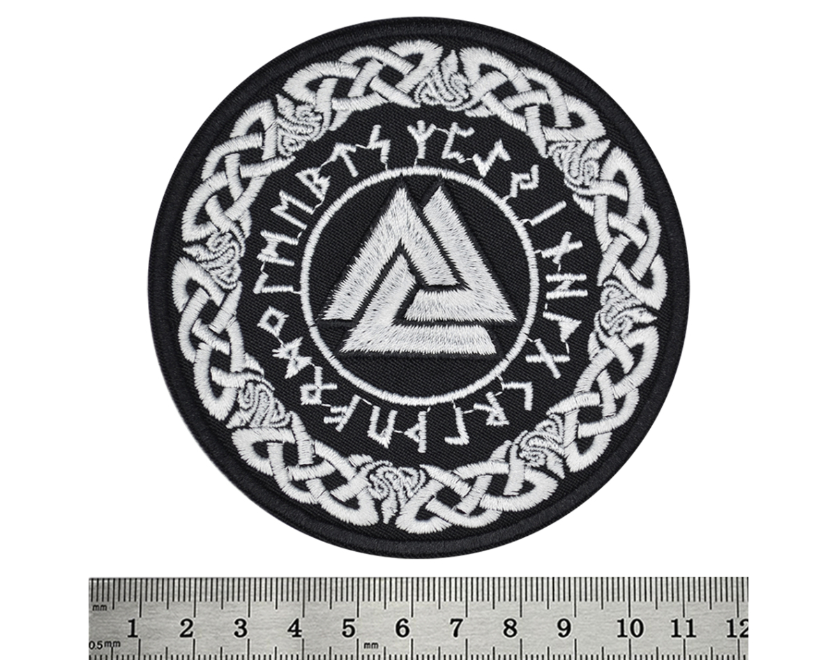 Valknut in a Runic Circle Embroidered Patch