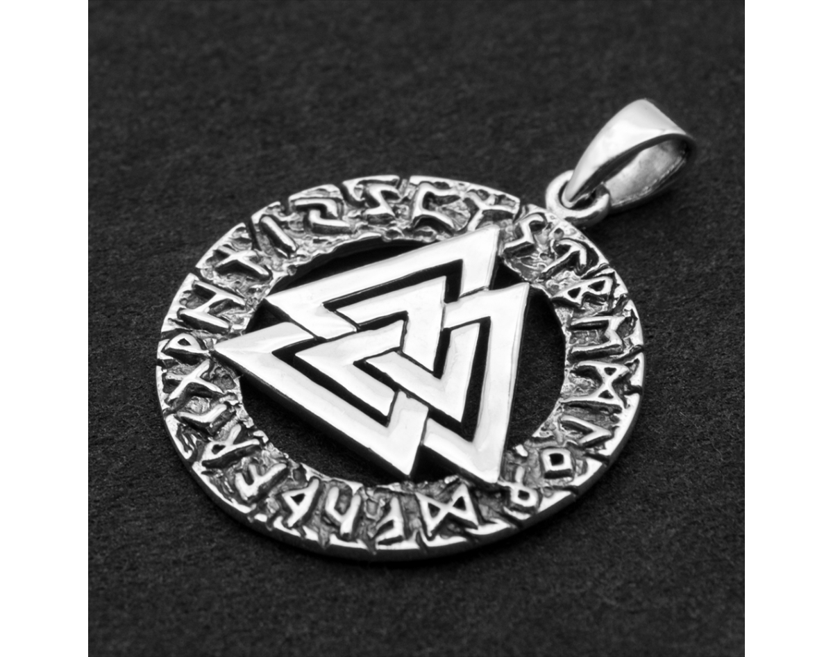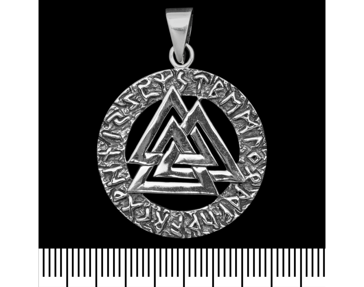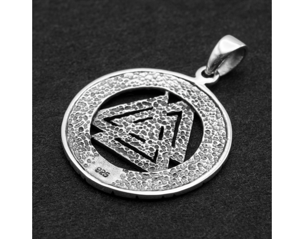 Valknut pendant, futhark (silver, 925 assay value) (sp-188) 6.95 grams, diameter 29 mm, size of the eye for the chain 6x4 mm