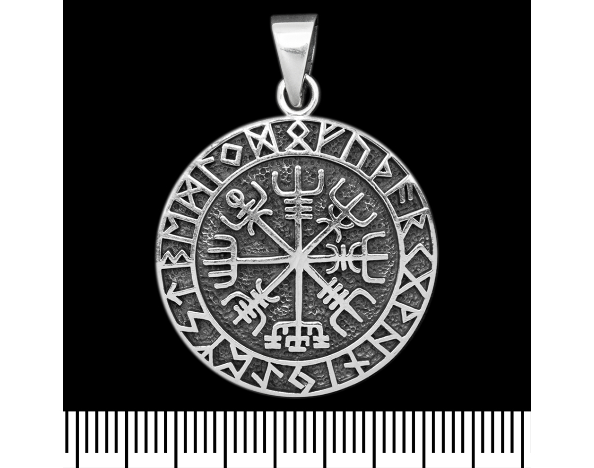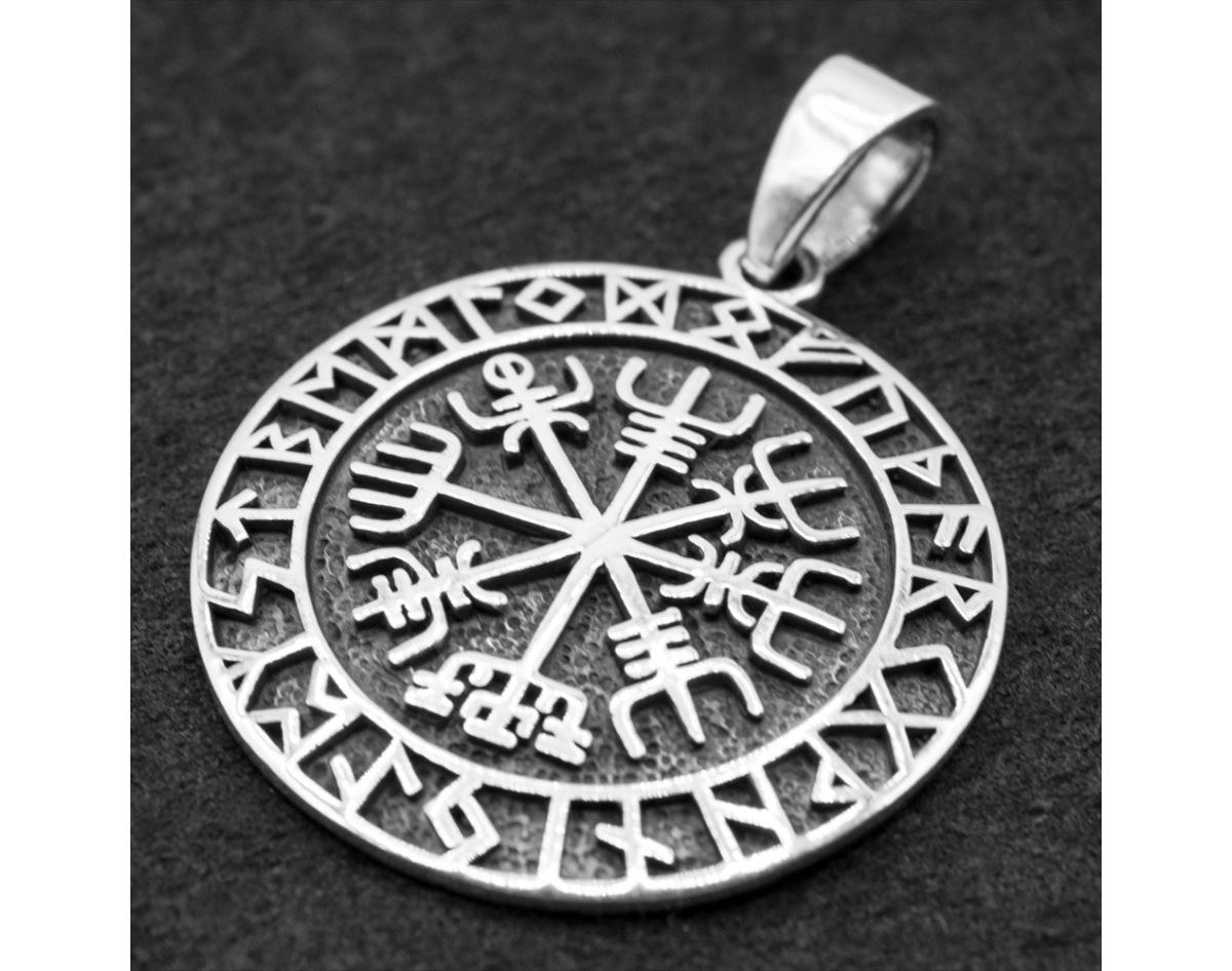 Vegvisir pendant (runic compass) with futhark (silver, 925 sample) (sp-216)