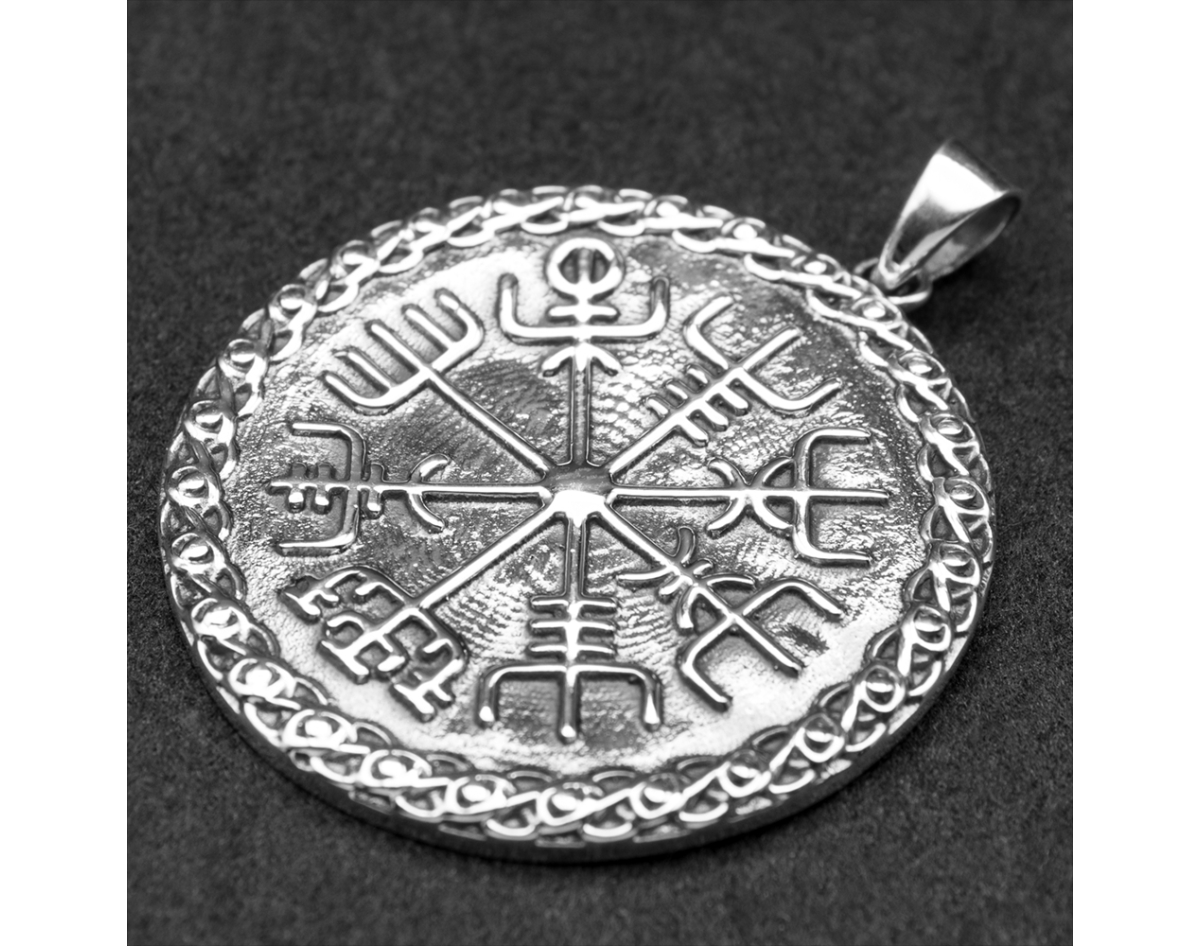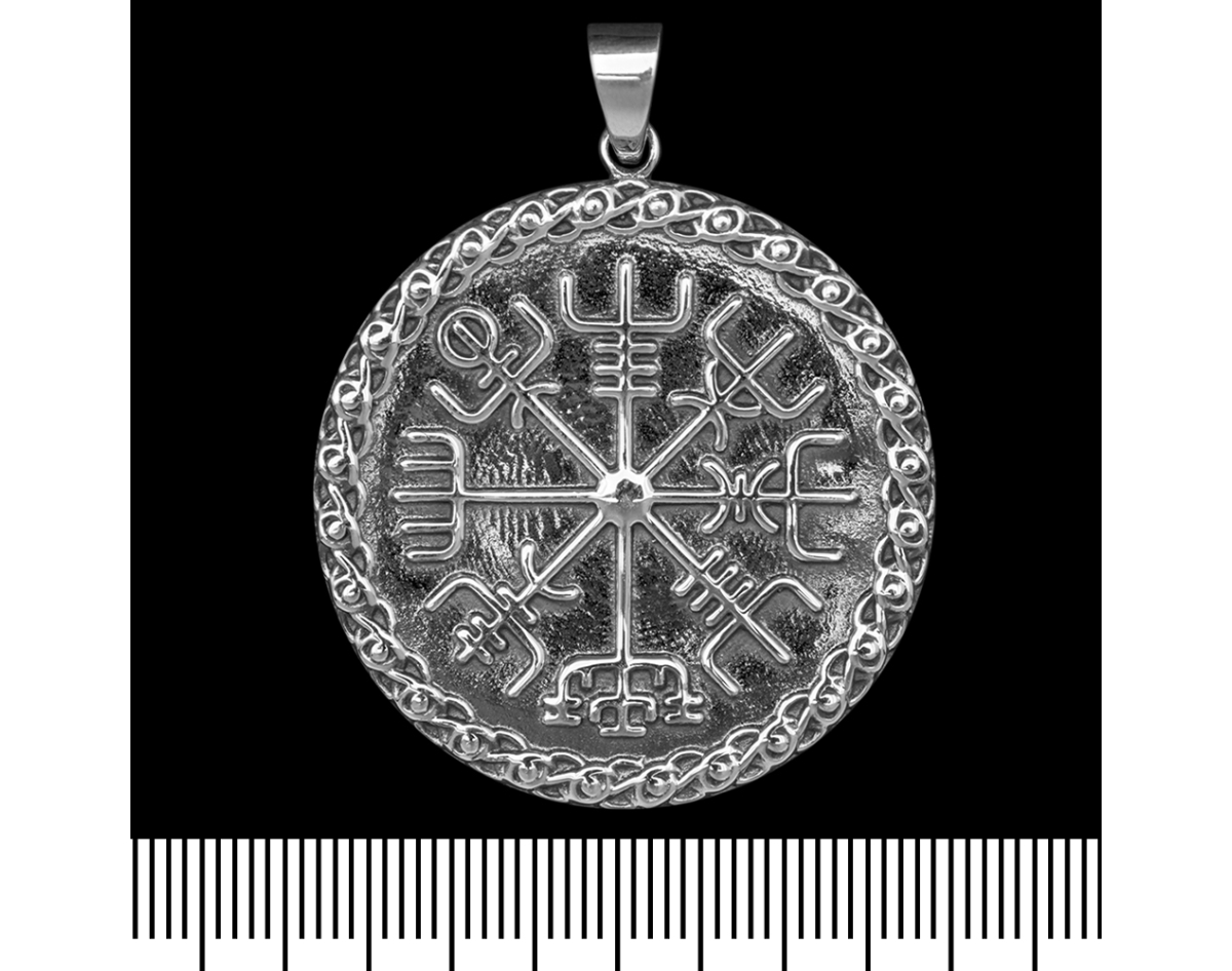 Vegvisir pendant (Vegvisir, runic compass) in a braided circle (silver, 925 sample) (sp-168) 11.55 grams, diameter 38 mm, eye size for chain 6x4 mm