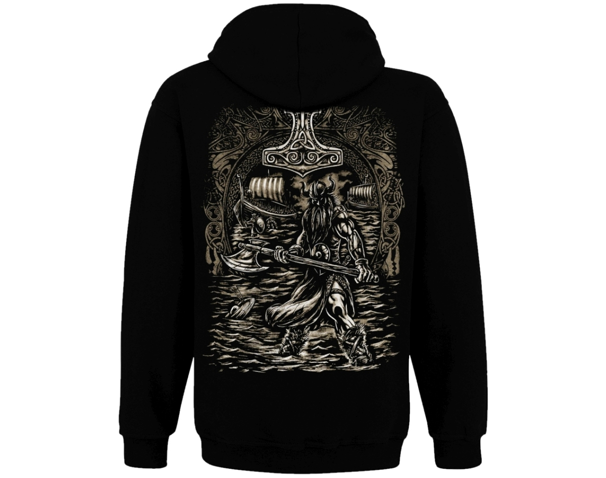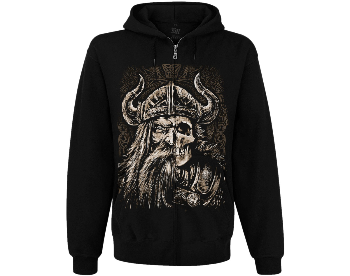 Viking (half face, half skull) Kangaroo Pocket Hoodie with a Zipper