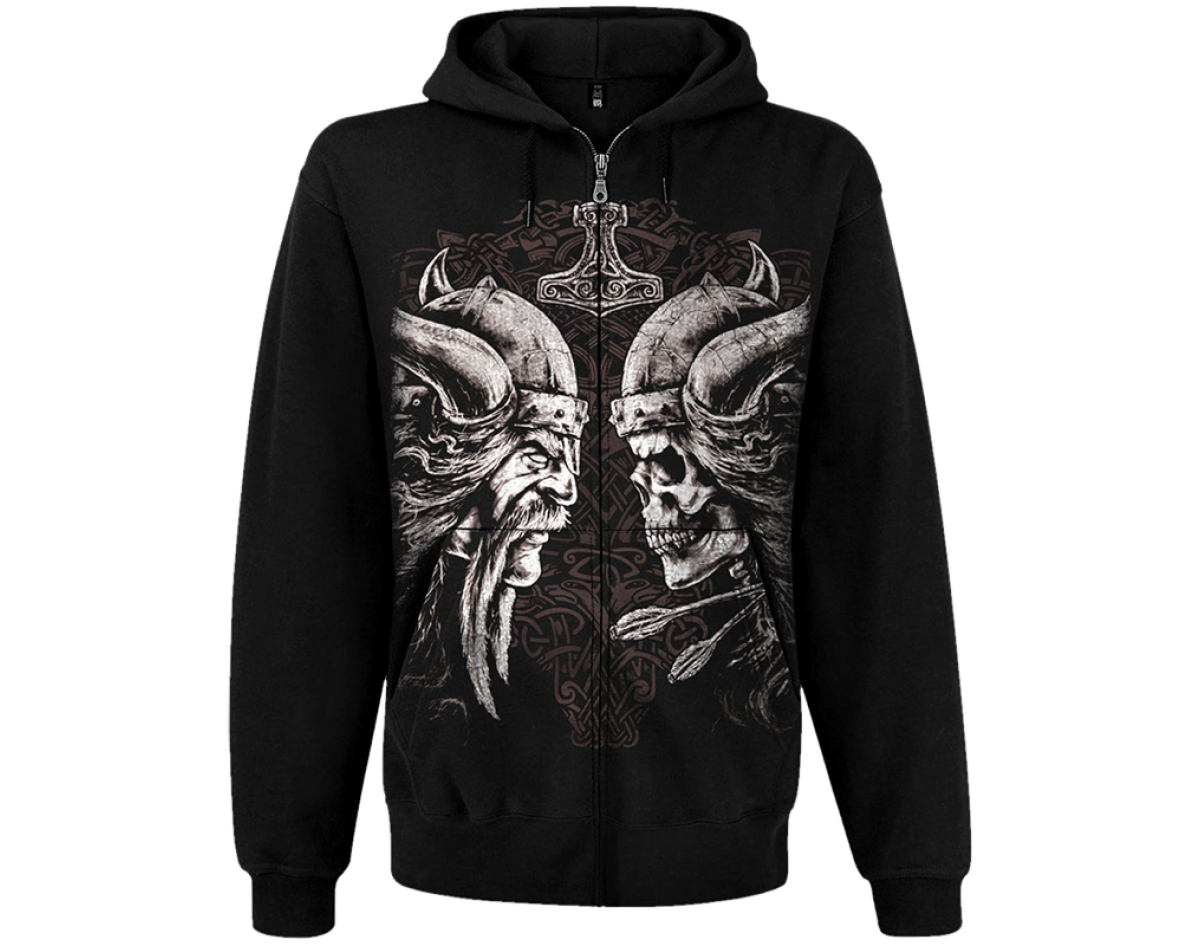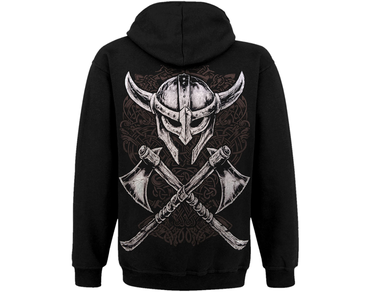 Viking with Skull Kangaroo Pocket Hoodie with a Zipper