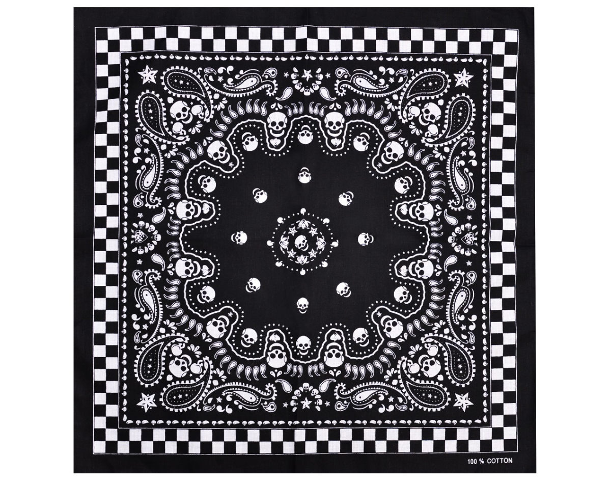 White Paisley on a Black Background (Chess Pattern) Bandana