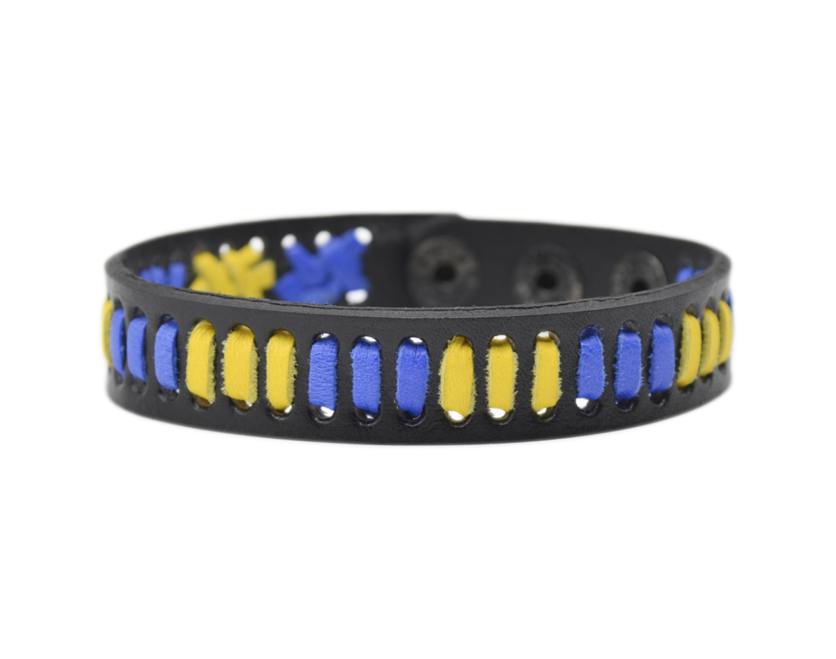 Yellow-blue leather bracelet (ptsbua-005)