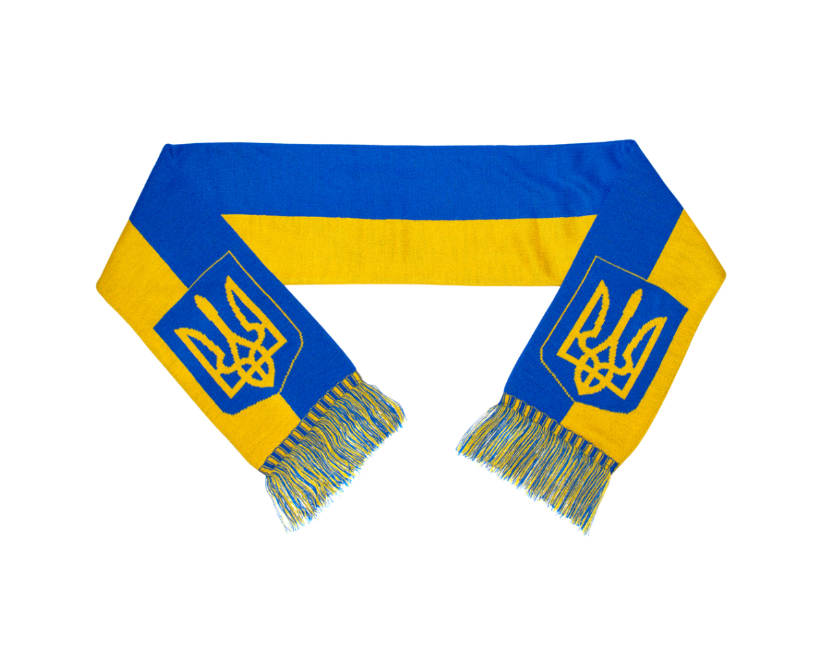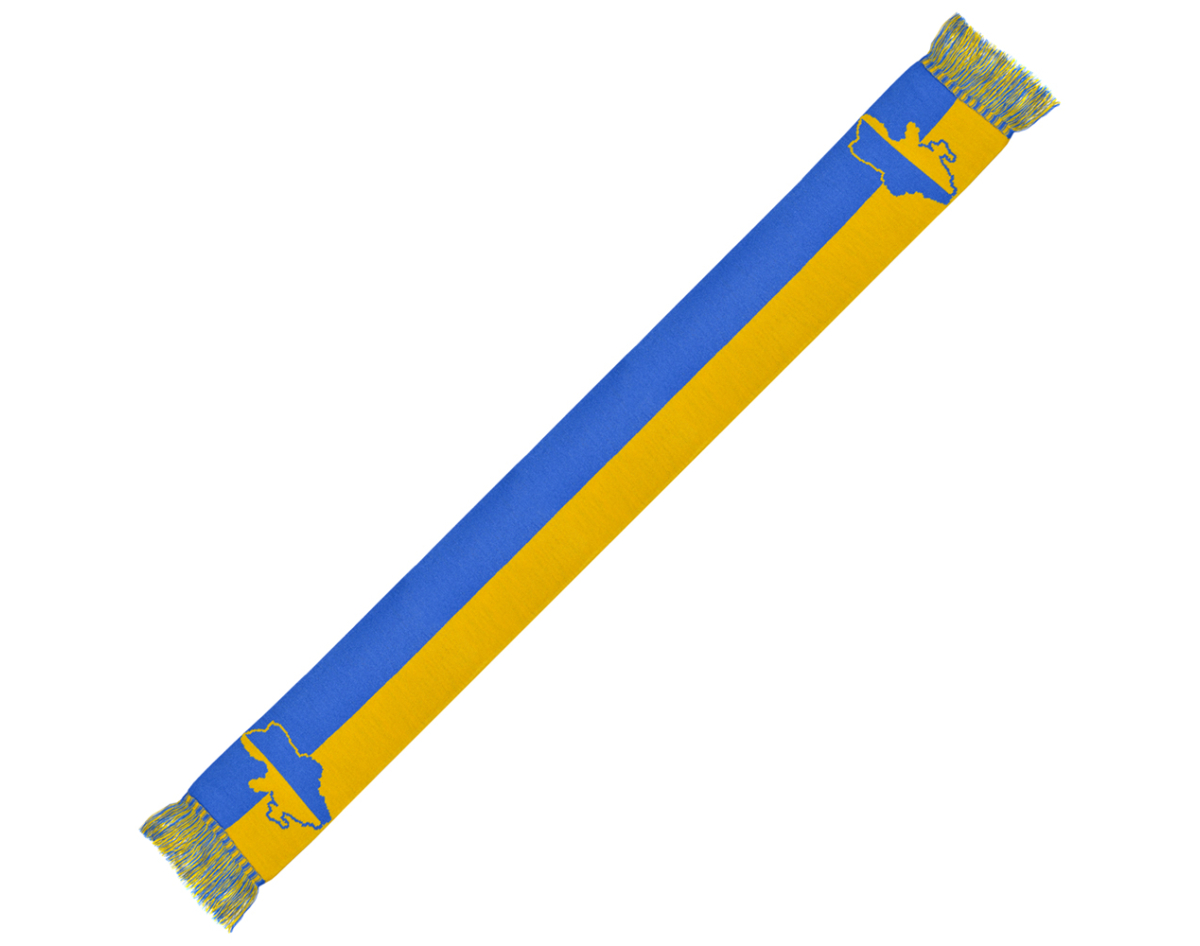 Yellow-blue scarf with coat of arms and map of Ukraine